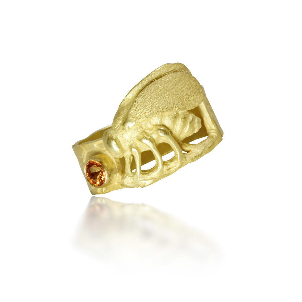 The 2 bees are below a quartz crystal hive, which has a little dome in the bottom of the crystal where there is a 13pt diamond.