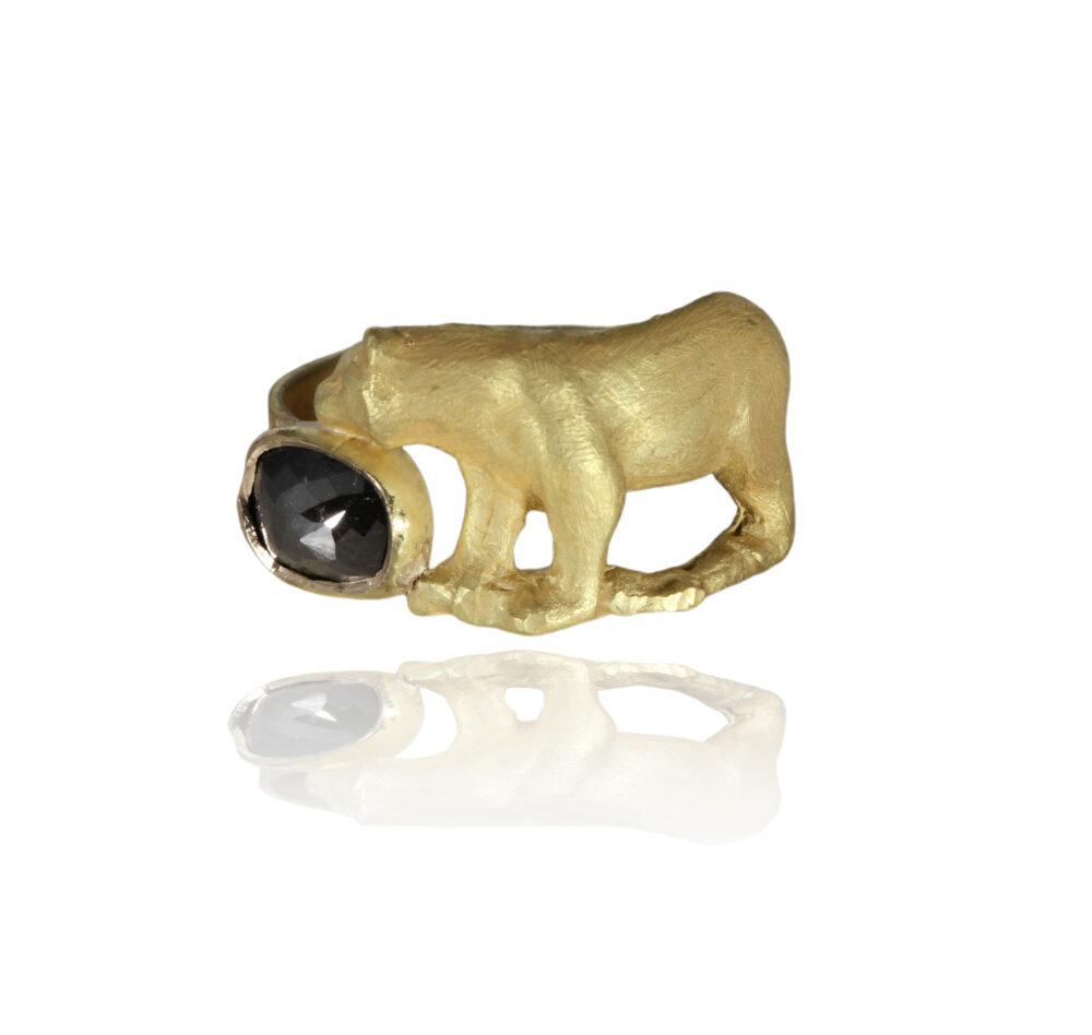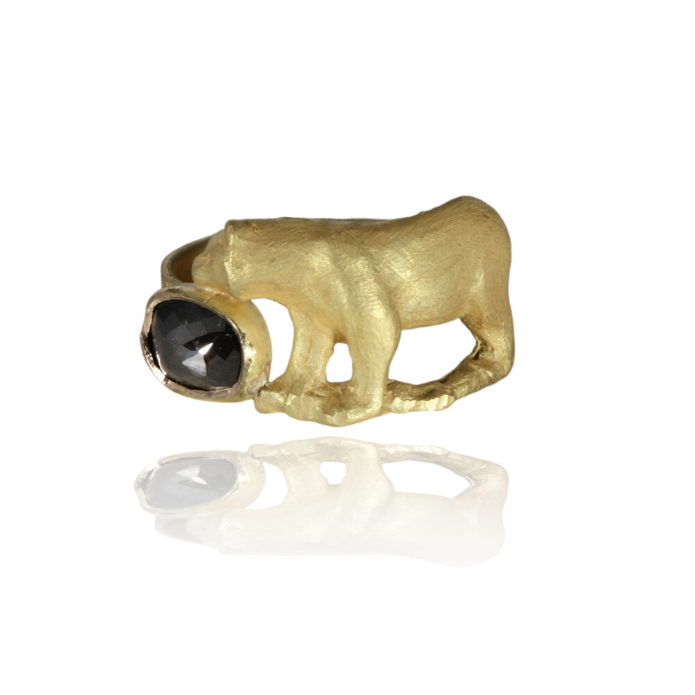 The bear is a 14k ring with a 1.03ct black diamond.