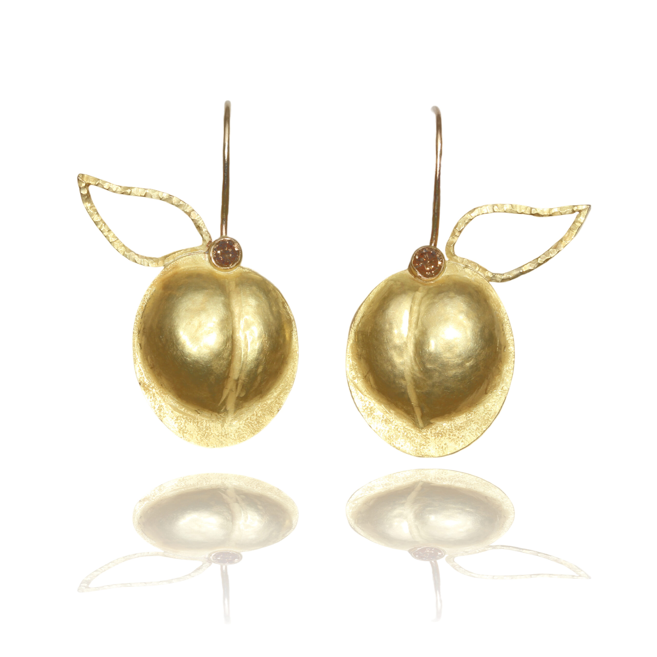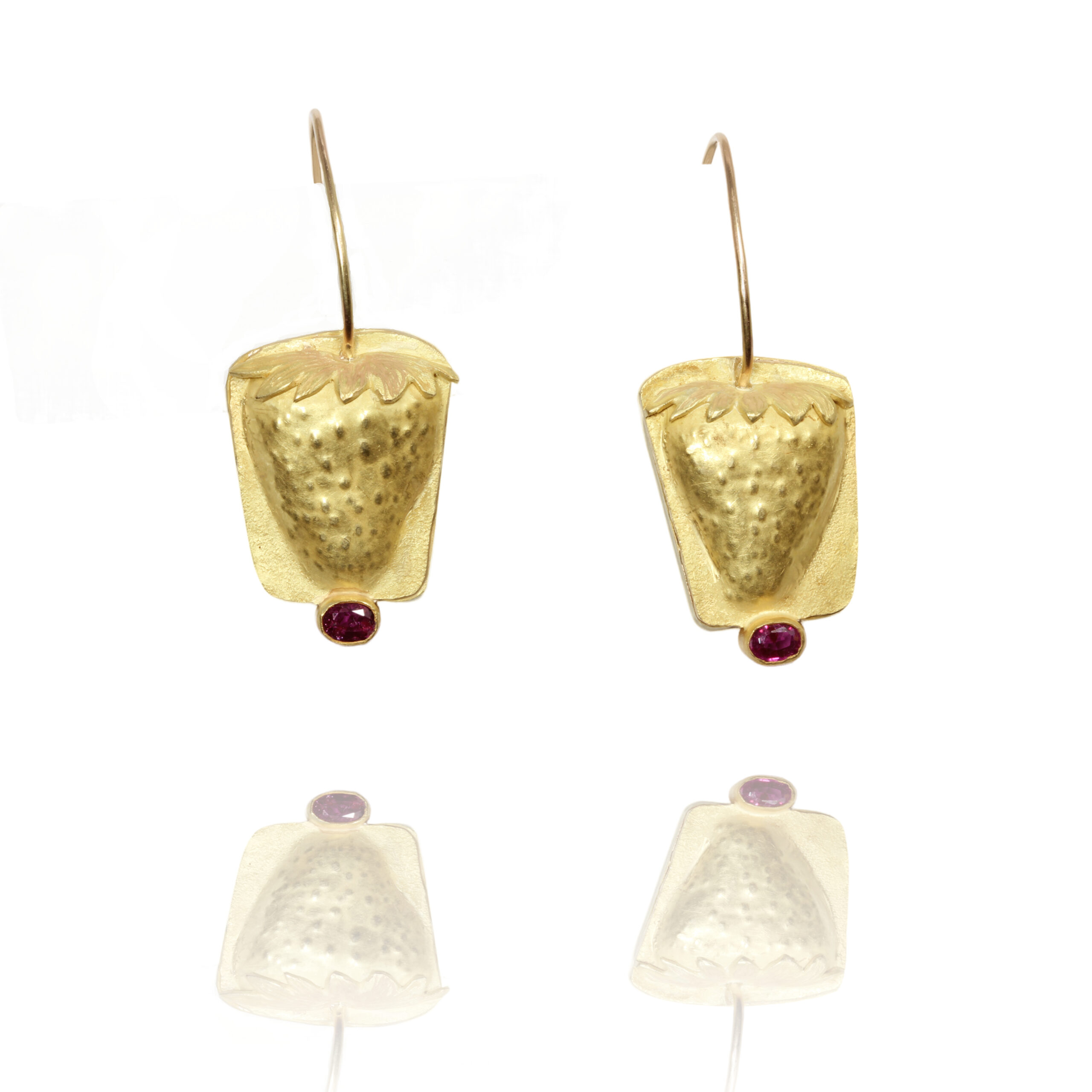 These simple little repoussé strawberry earrings have oval rubies on the bottom.