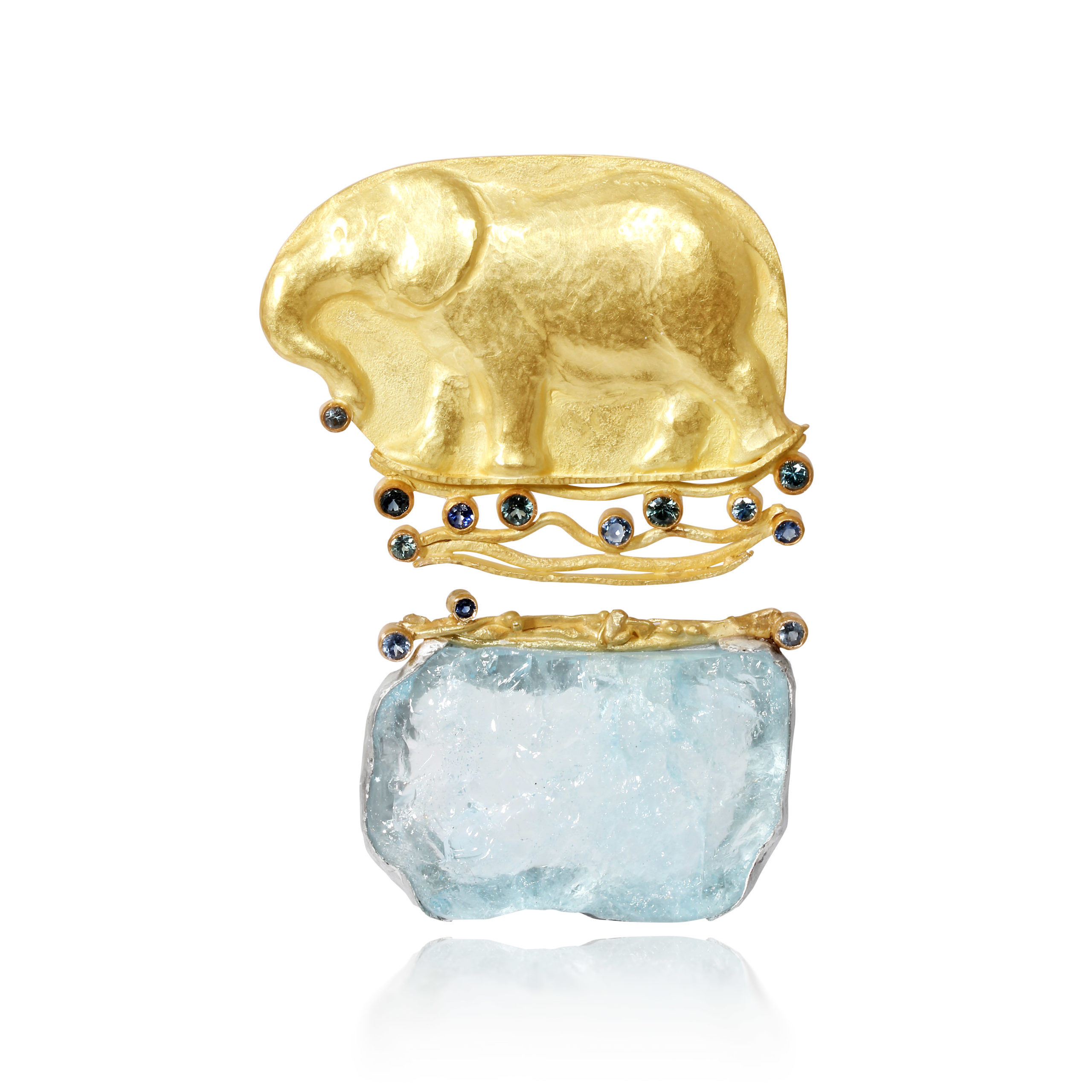 The Top part is 14k gold repoussé baby elaphant that has 1ct blue setunderneath